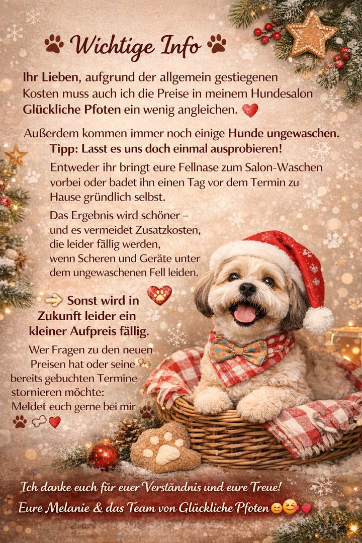 brauchen oder wollt Euren geplanten Termin vorziehen UND seid bereits Kunde und möchtet mir euren Liebling ohne Eure Gesellschaft anvertrauen, meldet Euch